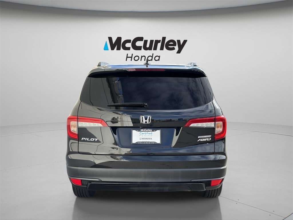 2022 Honda Pilot Special Edition Certified. AWD, 3rd row seats: split-bench, 4-Wheel Disc Brakes, 4.33 Axle Ratio, 7 Speakers, A/V remote: CabinControl, ABS brakes, Air Conditioning, Alloy wheels, AM/FM radio: SiriusXM, Apple CarPlay/Android Auto, Auto High-beam Headlights, Auto-dimming Rear-View mirror, Automatic temperature control, Blind Spot Information (BSI) System warning, Brake assist, Bumpers: body-color, Delay-off headlights, Dual front impact airbags, Dual front side impact airbags, Electronic Stability Control, Emergency communication system: HondaLink Assist, Exterior Parking Camera Rear, Forward collision: Collision Mitigation Braking System (CMBS) + FCW mitigation, Four wheel independent suspension, Front anti-roll bar, Front Center Armrest, Front dual zone A/C, Front fog lights, Fully automatic headlights, Garage door transmitter: HomeLink, Heated door mirrors, Heated Front Bucket Seats, Illuminated entry, Lane departure: Lane Keeping Assist System (LKAS) active, Leather Seat Trim, Low tire pressure warning, Memory seat, Occupant sensing airbag, Overhead airbag, Panic alarm, Power door mirrors, Power driver seat, Power Liftgate, Power moonroof, Power passenger seat, Power steering, Power windows, Radio: 215-Watt Audio System, Rear air conditioning, Rear anti-roll bar, Rear seat center armrest, Reclining 3rd row seat, Remote keyless entry, Roof rack: rails only, Security system, Speed control, Speed-sensing steering, Speed-Sensitive Wipers, Split folding rear seat, Spoiler, Steering wheel mounted audio controls, Telescoping steering wheel, Tilt steering wheel, Traction control, Turn signal indicator mirrors, Variably intermittent wipers, Wheels: 20" Exclusive Gloss Black Alloy.