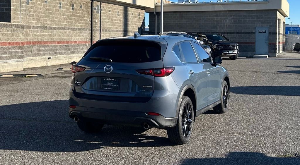 2022 Mazda CX-5 2.5 S Carbon Edition AWD 6-Speed Automatic SKYACTIV® 2.5L 4-Cylinder DOHC 16V Polymetal Gray Mazda Certified Pre-Owned Certified, 4-Wheel Disc Brakes, 4.624 Axle Ratio, 6 Speakers, ABS brakes, Air Conditioning, Alloy wheels, AM/FM radio, AppLink/Apple CarPlay and Android Auto, Auto High-beam Headlights, Auto-dimming Rear-View mirror, Automatic temperature control, Bose Audio Credit, Brake assist, Bumpers: body-color, Delay-off headlights, Driver door bin, Driver vanity mirror, Dual front impact airbags, Dual front side impact airbags, E911 Automatic Emergency Notification, Electronic Stability Control, Emergency communication system: MAZDA CONNECT, Exterior Parking Camera Rear, First Aid Kit, Four wheel independent suspension, Front anti-roll bar, Front Bucket Seats, Front Center Armrest w/Storage, Front dual zone A/C, Front reading lights, Fully automatic headlights, Garage door transmitter: HomeLink, Heated Front Bucket Seats, Heated front seats, Illuminated entry, Infotainment System Voice Command, Leather Seat Trim, Leather Shift Knob, Low tire pressure warning, Memory seat, Multifunction Commander Control, Occupant sensing airbag, Outside temperature display, Overhead airbag, Overhead console, Pandora, Panic alarm, Passenger door bin, Passenger vanity mirror, Power door mirrors, Power driver seat, Power moonroof, Power passenger seat, Power steering, Power windows, Radio Broadcast Data System Program Information, Radio data system, Radio: AM/FM/HD Audio System, Rain sensing wipers, Rear anti-roll bar, Rear reading lights, Rear seat center armrest, Rear window defroster, Rear window wiper, Remote keyless entry, SMS Text Msg Audio Delivery & Reply, Speed control, Speed-sensing steering, Split folding rear seat, Spoiler, Steering wheel mounted audio controls, Tachometer, Telescoping steering wheel, Tilt steering wheel, Traction control, Trip computer, Turn signal indicator mirrors, Variably intermittent wipers, Wheels: 19" x 7J Aluminum Alloy.